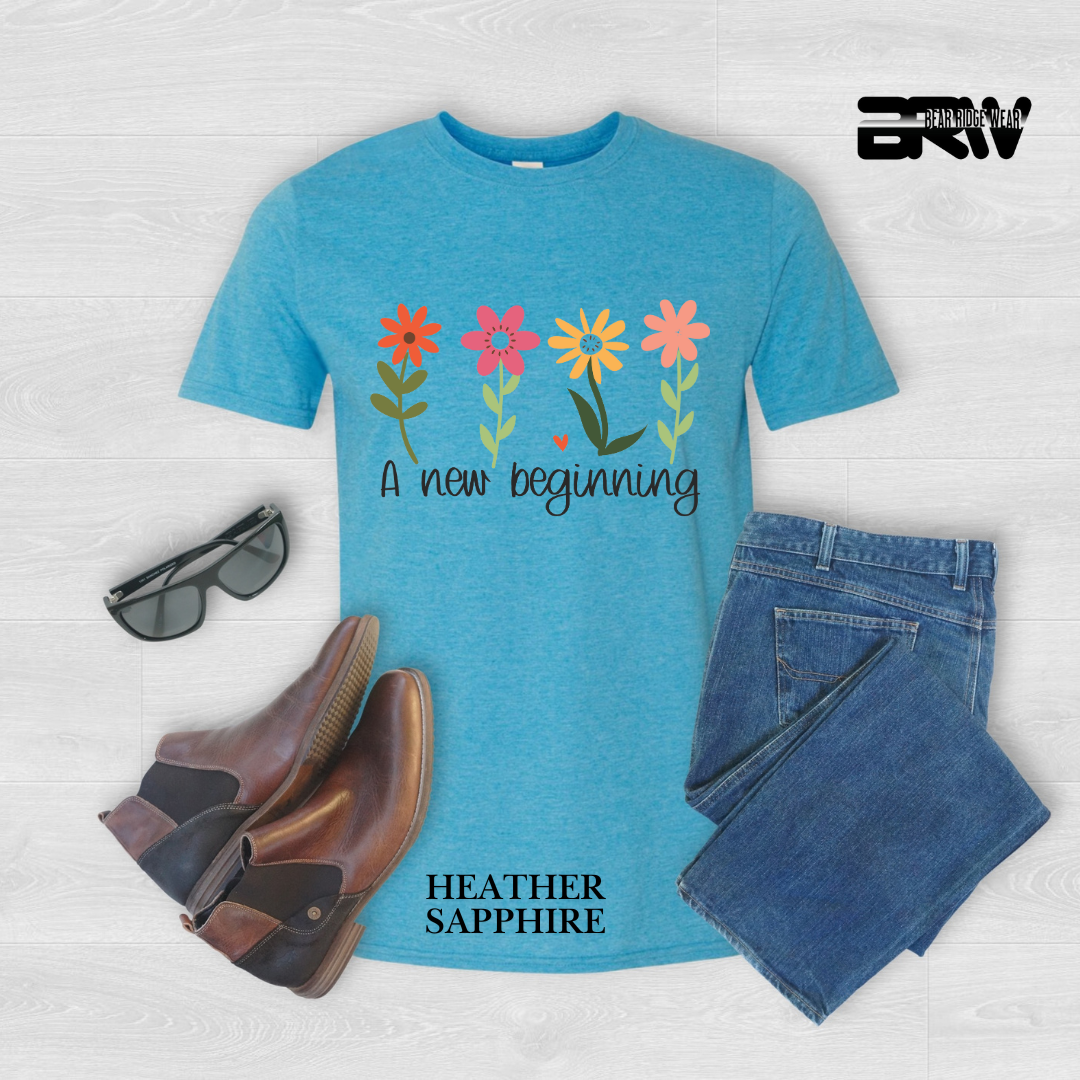 Embrace the season of renewal with our "A New Beginning" spring tee. Adorned with soft, blooming flowers, this tee captures the essence of spring's fresh start. Light and comfortable, it’s the perfect addition to your wardrobe as you step into brighter, warmer days.