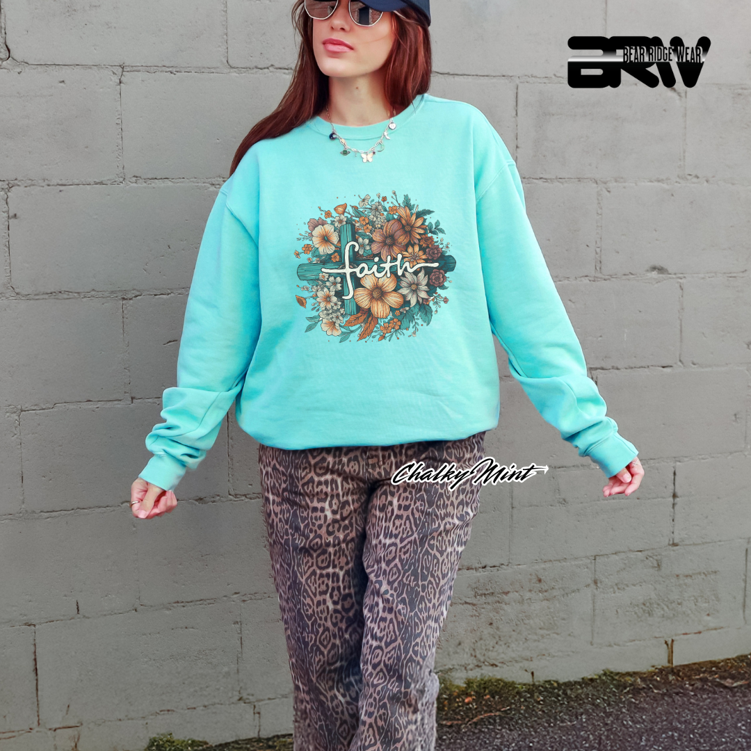 Elevate your wardrobe with our 'Faith, Cross and flowers' Long-Sleeve Tee. This minimalist design features a motivating message and personalized graphic, perfect for any holiday occasion. Show off your faith in style with our Christian-inspired graphic tee, designed for women who want to make a statement.