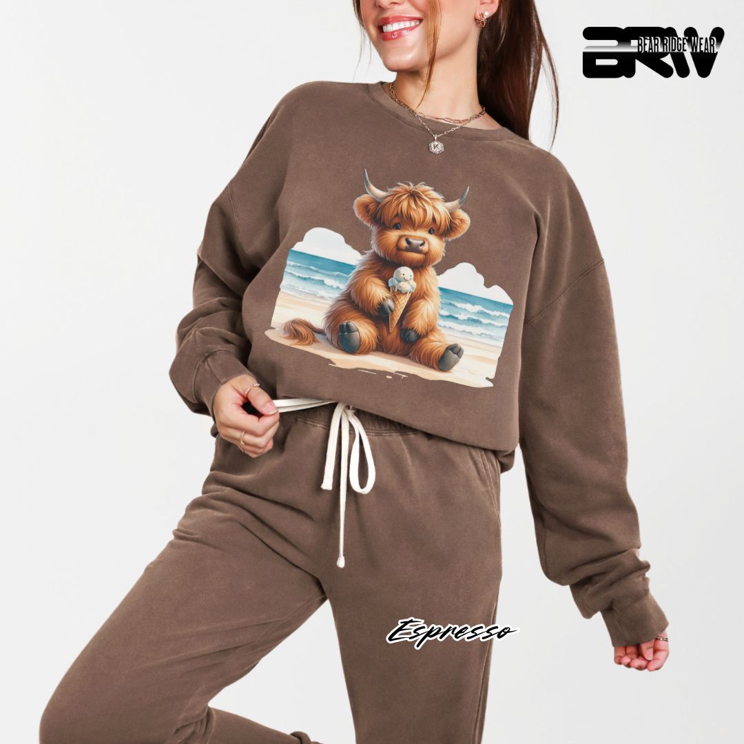 'Highland Cow-Beach-Ice Cream' Summer Crewneck Sweatshirt