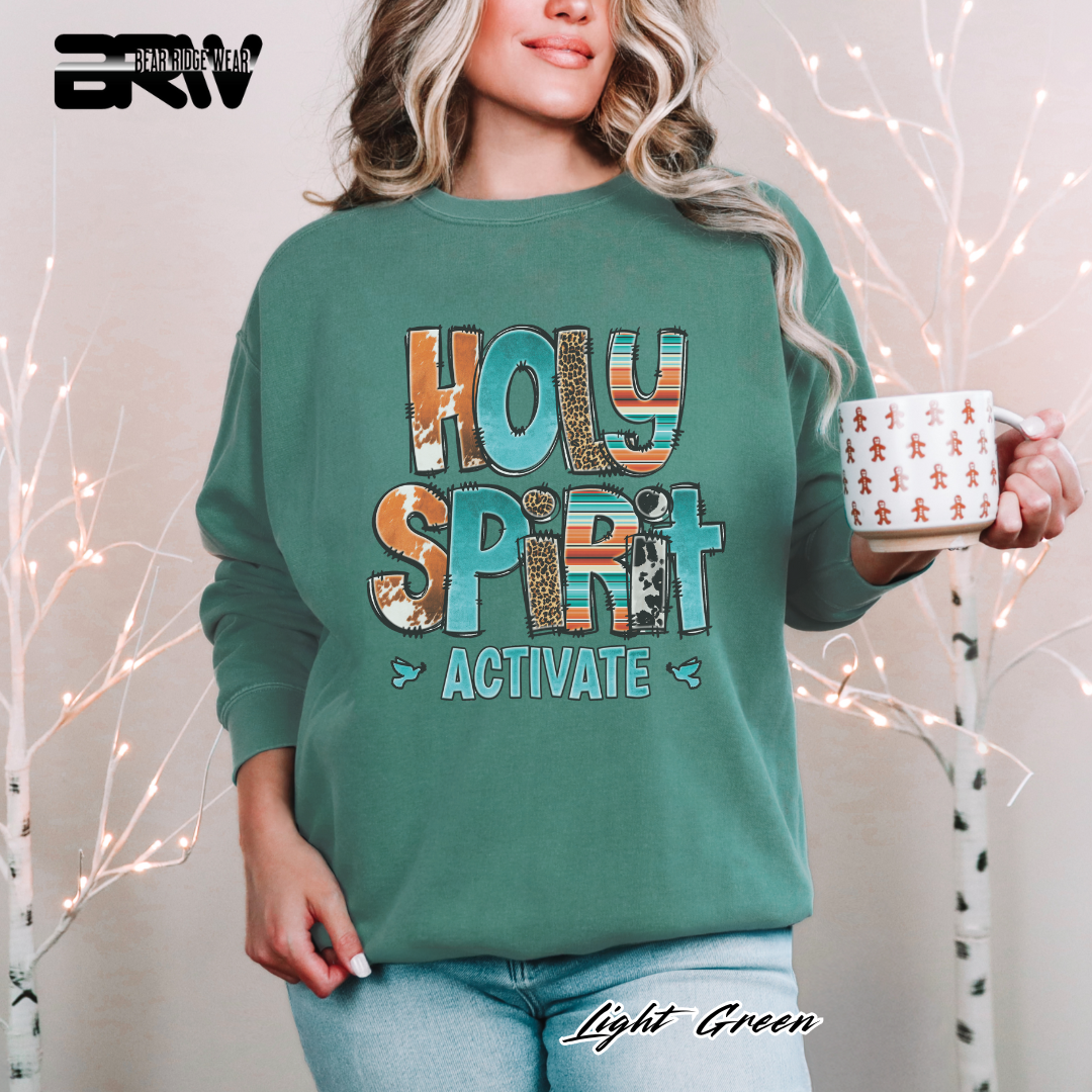 Transform your wardrobe with the 'Holy Spirit Activate' Faith Long-Sleeve Tee. Showcasing a powerful faith-inspired graphic, this tee is perfect for women who want to boldly express their beliefs. Made with soft, long-lasting fabric, this tee is a must-have for any true believer.