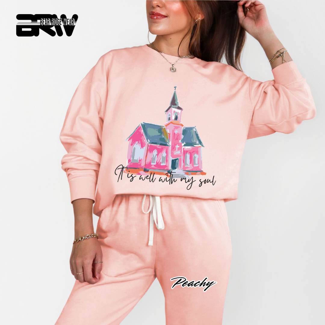 Feel inspired and showcase your faith with our 'It Is Well With My Soul' Faith Crewneck Sweatshirt. Made for women, this sweatshirt features a faith graphic design that will uplift your spirit. Stay cozy and stylish with this trendy crewneck sweatshirt.