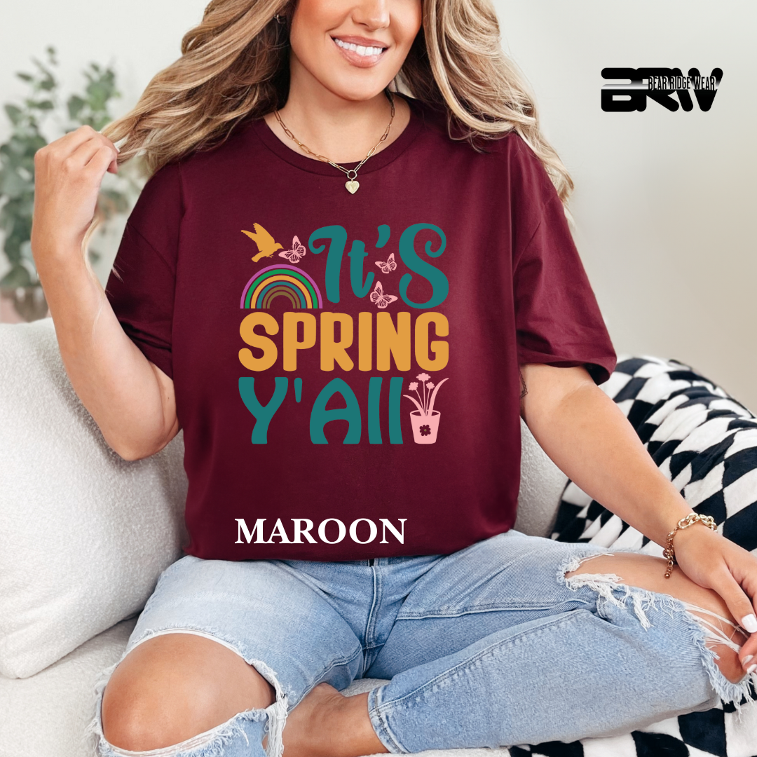 The "It's Spring Y'All" tee is a cute, comfortable way for women to celebrate the arrival of spring. Made from soft, lightweight fabric, it’s perfect for sunny days, outdoor adventures, or just enjoying the season’s vibes. Add a touch of fun to your spring wardrobe with this cheerful, seasonal tee!