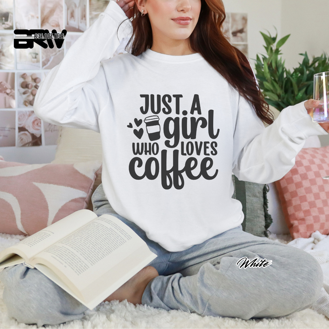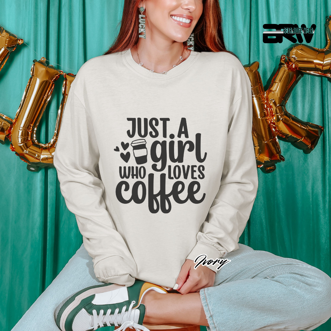 A cozy and stylish long-sleeve tee for every coffee lover! Featuring the playful quote "Just A Girl Who Loves Coffee", this shirt is perfect for caffeine enthusiasts who want to wear their love for coffee with pride. Soft, comfortable, and effortlessly chic, whether you're sipping your morning brew or heading out for a coffee run, this tee is a must-have.