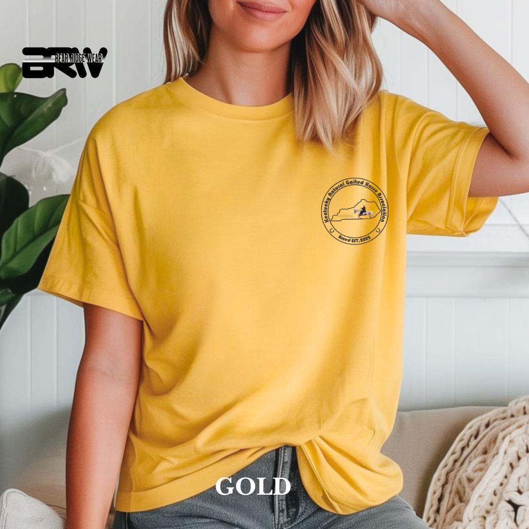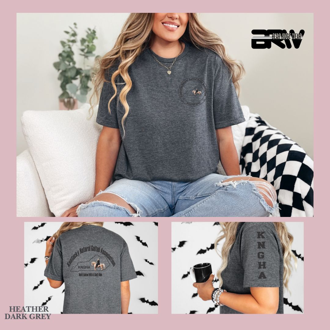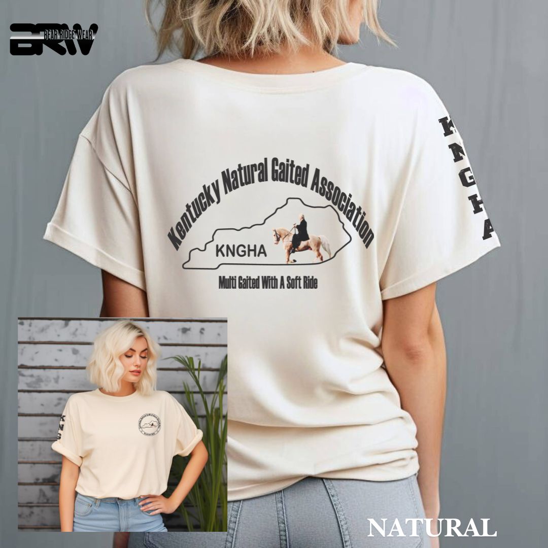 Ride in style with our KNGHA T-Shirt featuring KY natural gaited horses. This tee is sure to bring a smile to your face while you enjoy the smooth and comfortable ride of these amazing horses. Perfect for any equestrian lover.