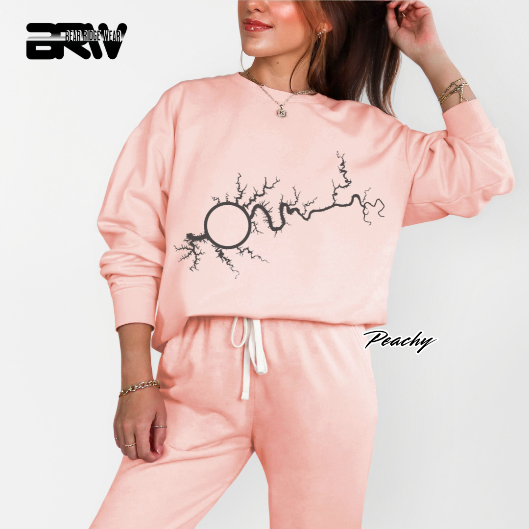 Celebrate your love for the lake with the "Lake Cumberland Map" Crewneck Sweatshirt. Featuring a detailed waterways map with a circle at its heart, this cozy and stylish sweatshirt is perfect for lake lovers who carry Lake Cumberland close to their hearts.