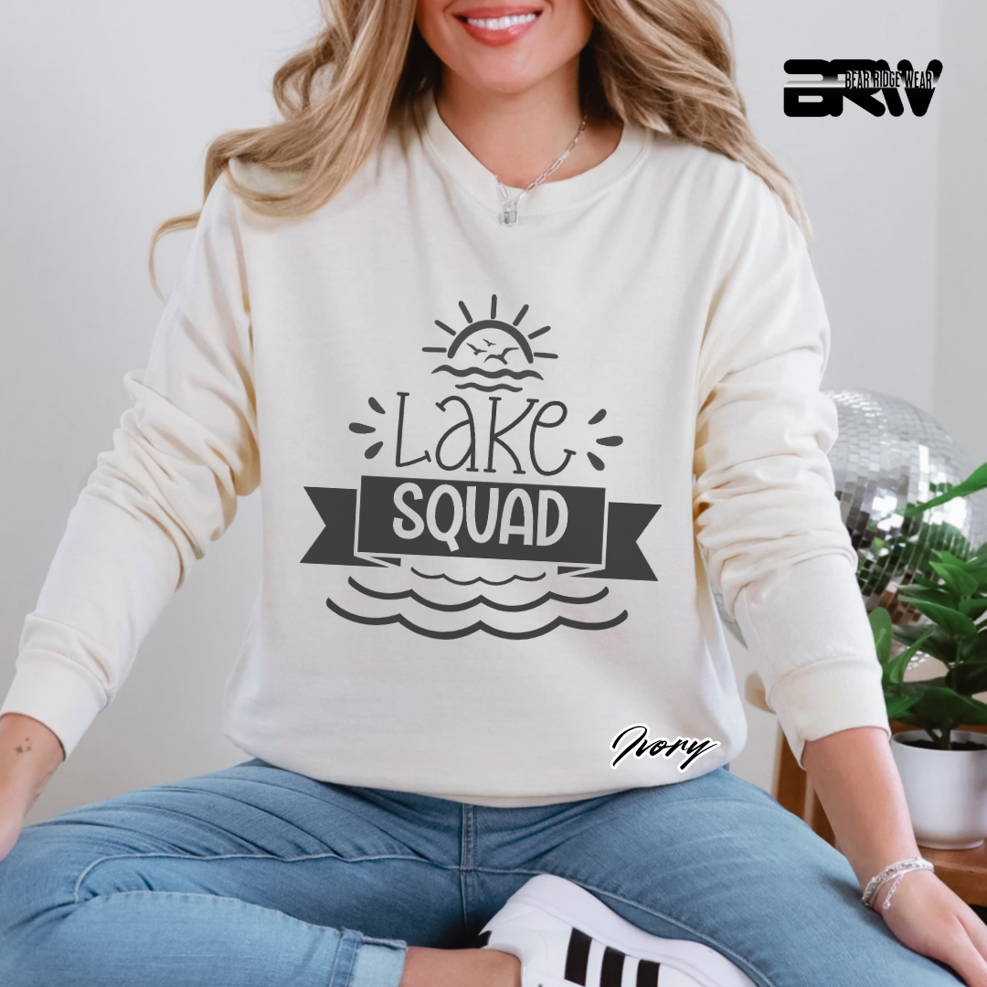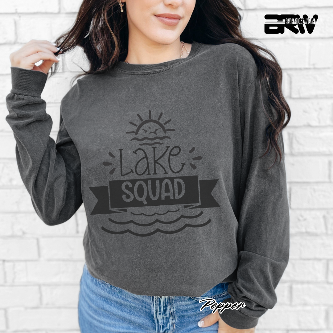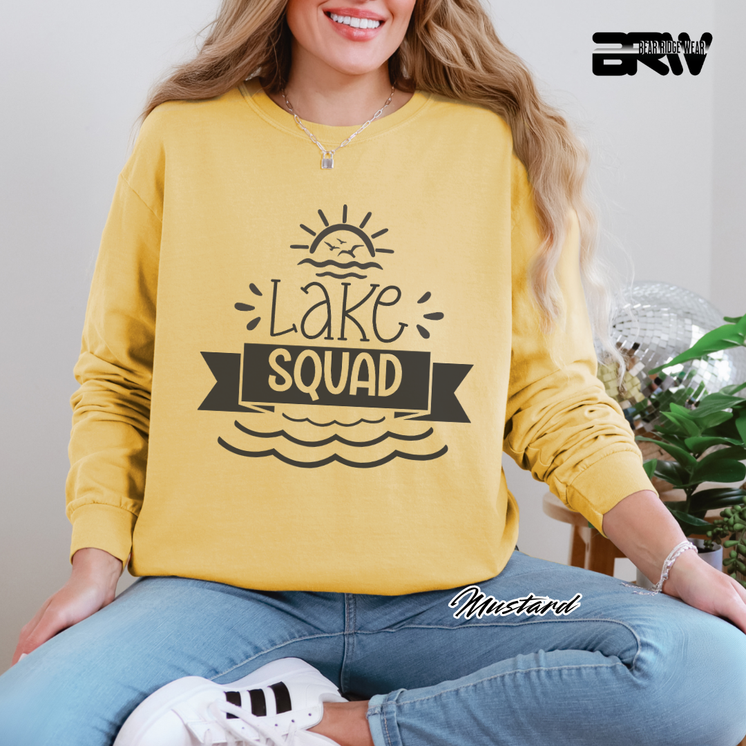 Bring the crew together with the "Lake Squad" Long-Sleeve Tee. Perfect for lake days and cool nights, this soft and stylish tee is a must-have for anyone who loves life on the water. Stay cozy, make memories, and rep your squad in style!