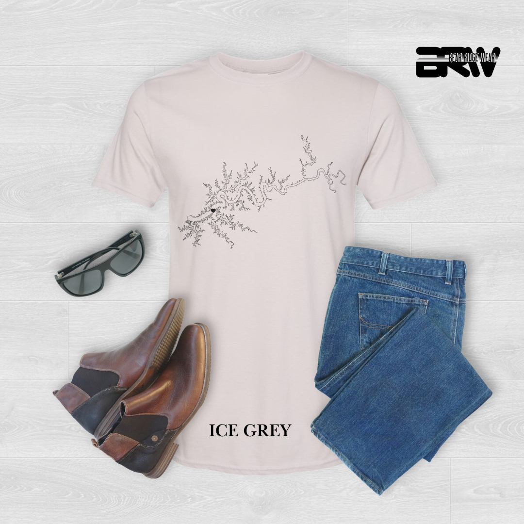 Introducing the Minimalist Lake Cumberland Map Tee, a sleek, modern design for those who love the lake. This tee features a transparent map of Lake Cumberland, perfectly blending into the fabric’s color for a subtle yet striking look. Wear it and show your love for Lake Cumberland in a truly unique way!