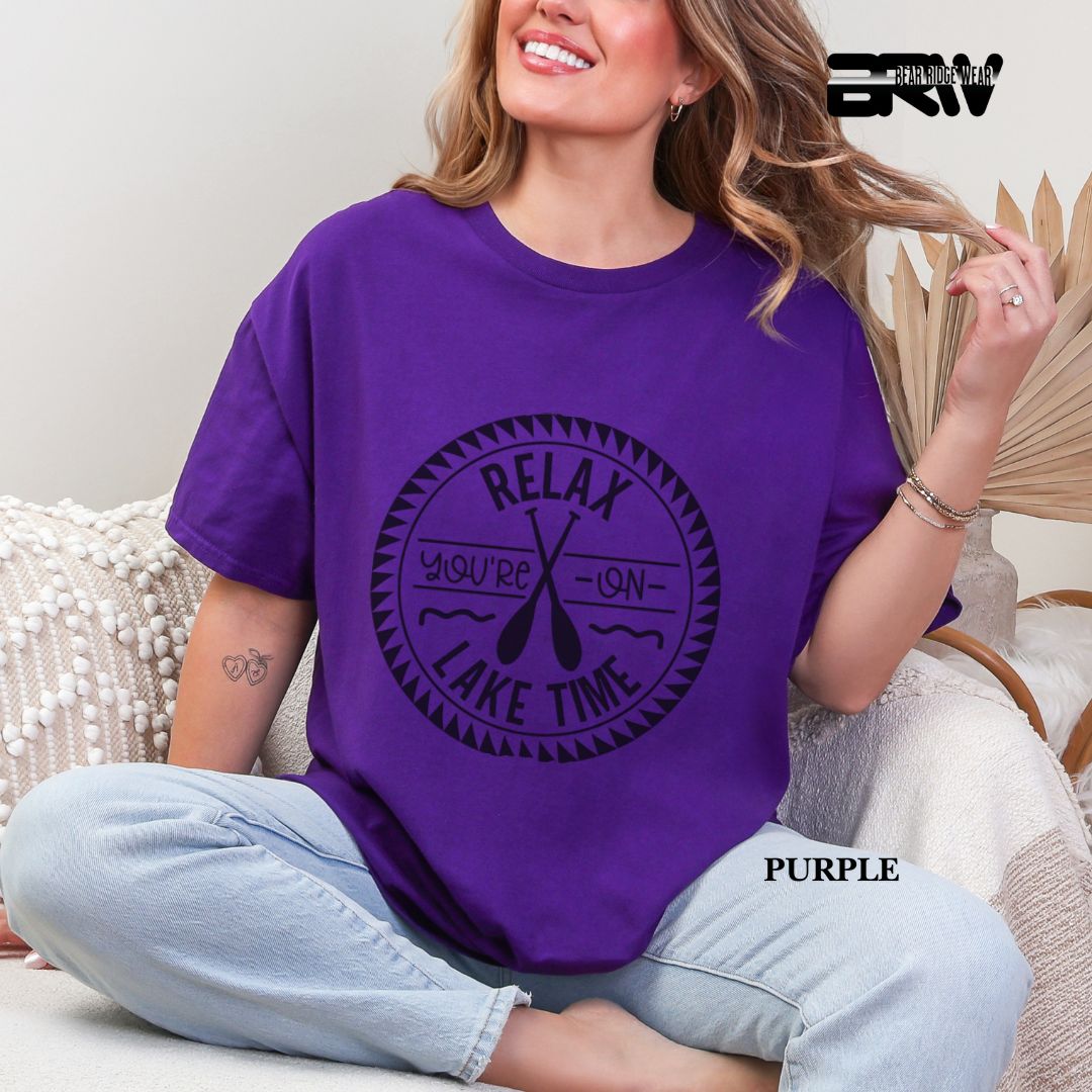 Unwind in style with our 'Relax You're On Lake Time' 3 Summer Tee. Designed for women, this trendy graphic t-shirt is perfect for everyday wear. Express your love for the lake and stand out with our custom design. The best tee for any summer adventure!