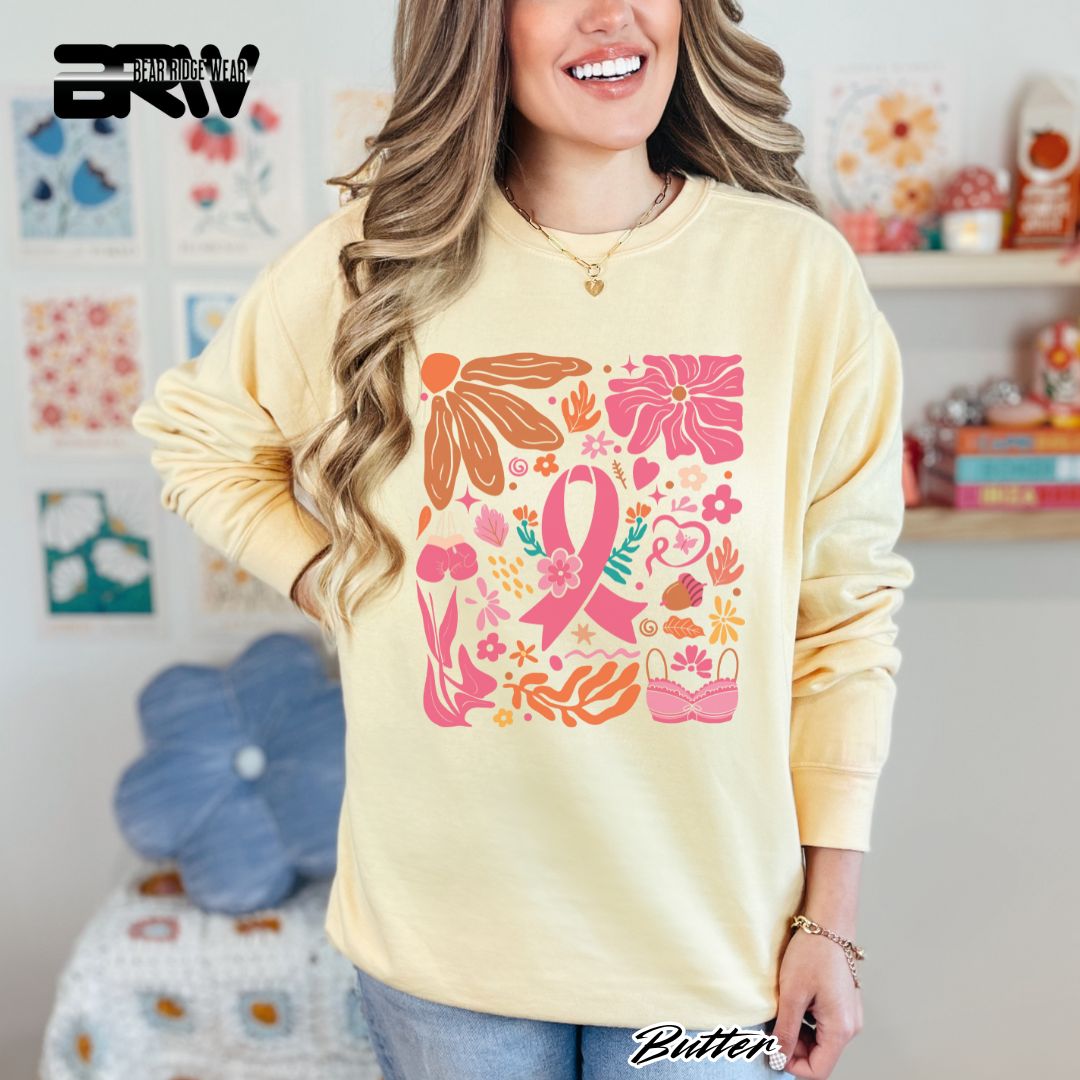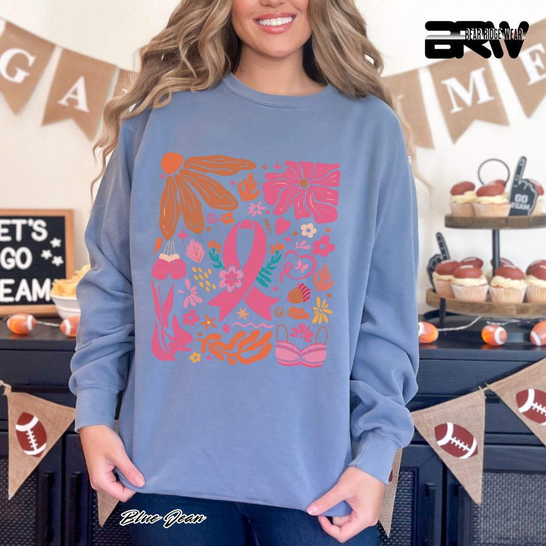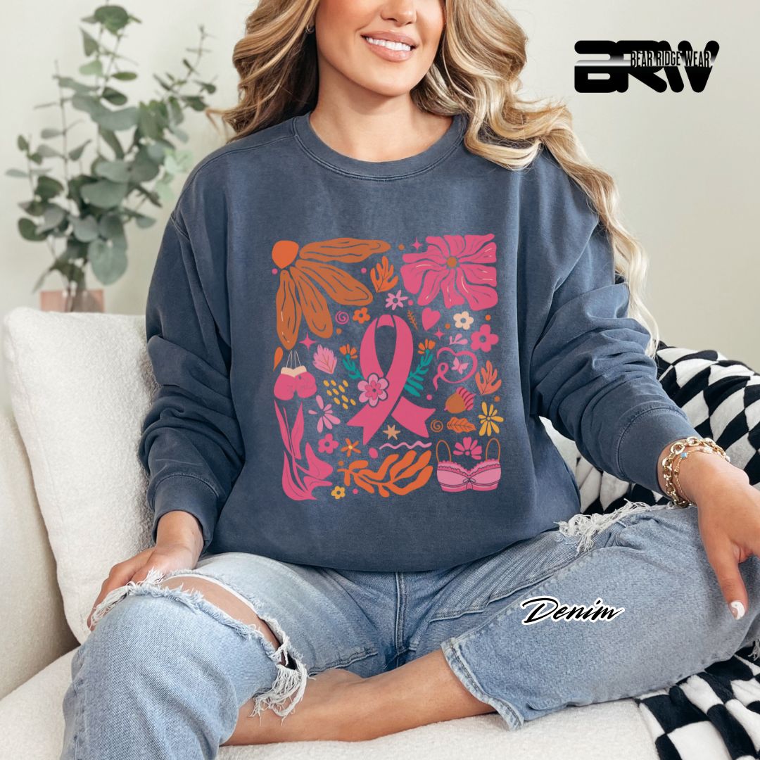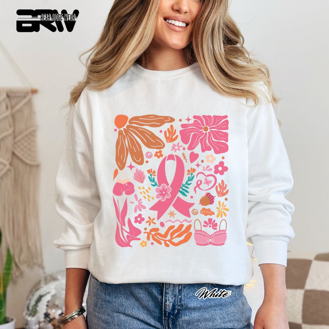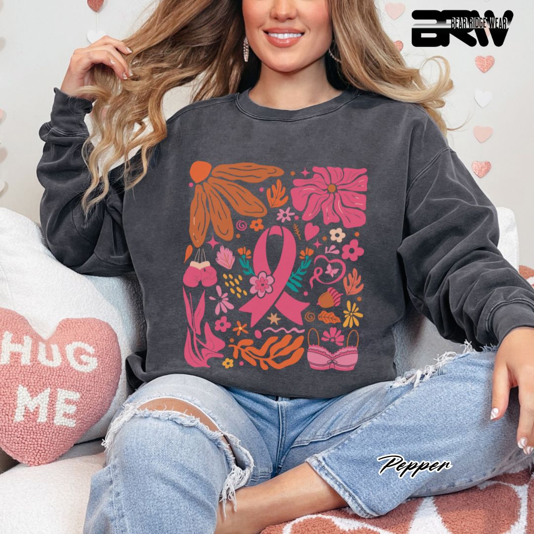 Embrace warmth and advocacy with the 'Ribbon With Flowers Around' Awareness Crewneck Sweatshirt. Crafted from a premium cotton blend, it offers lasting comfort and a flattering fit for everyday wear. The elegant pink ribbon surrounded by delicate flowers symbolizes unity and hope, making it perfect for breast cancer awareness events or daily inspiration. Available in women’s sizes S to 2XL, this sweatshirt supports both style and cause, letting you honor survivors and champions with every wear.