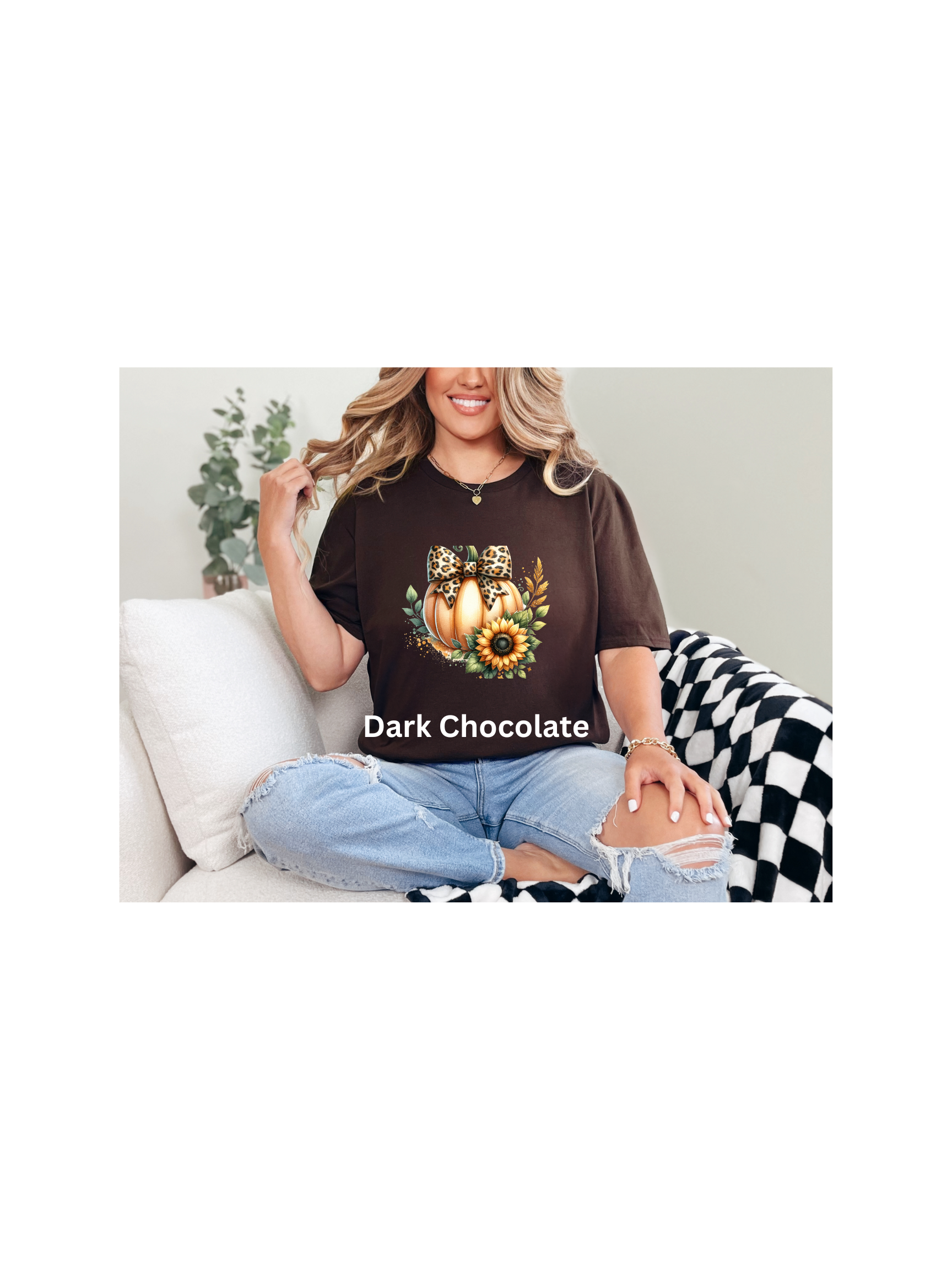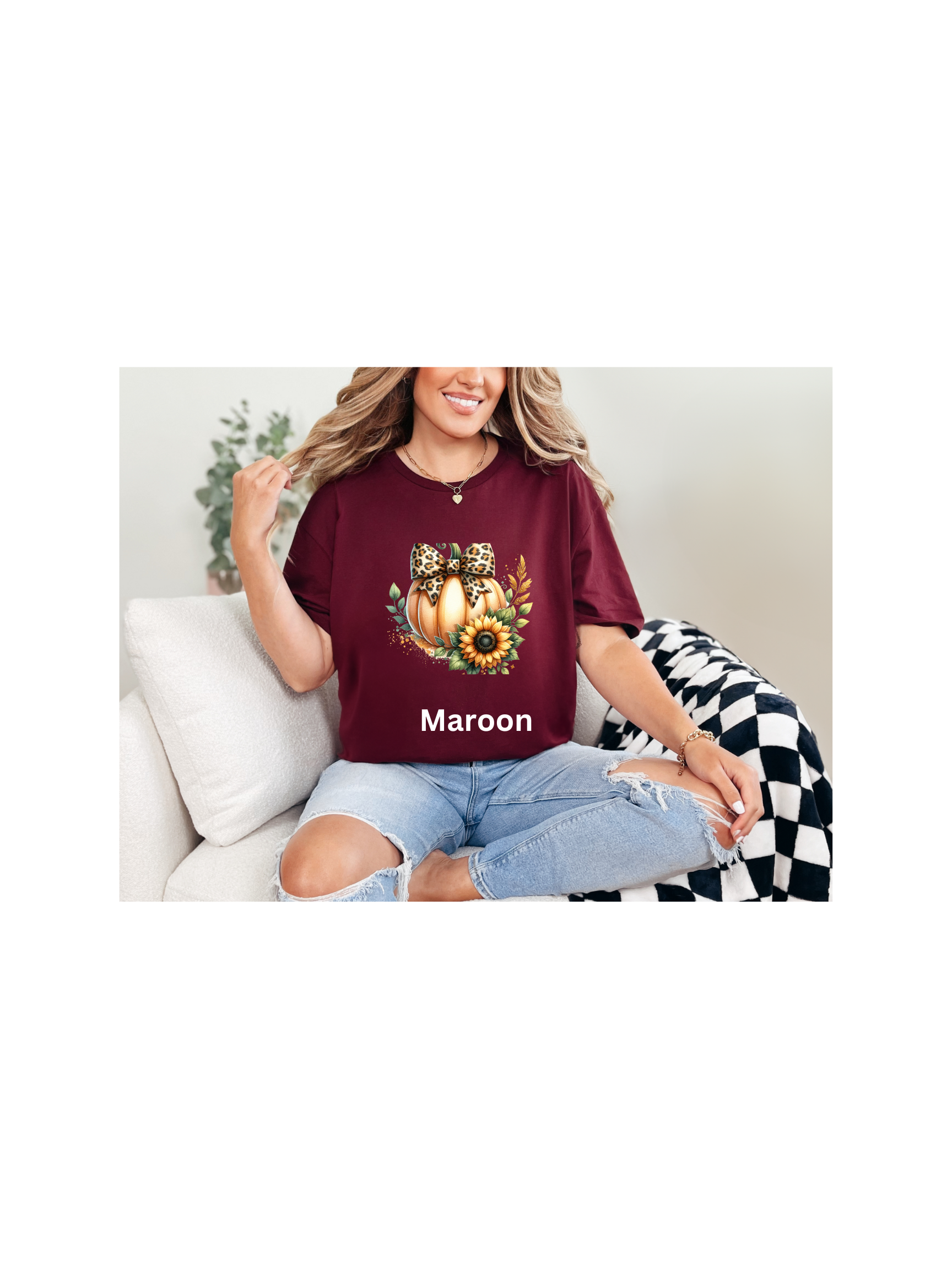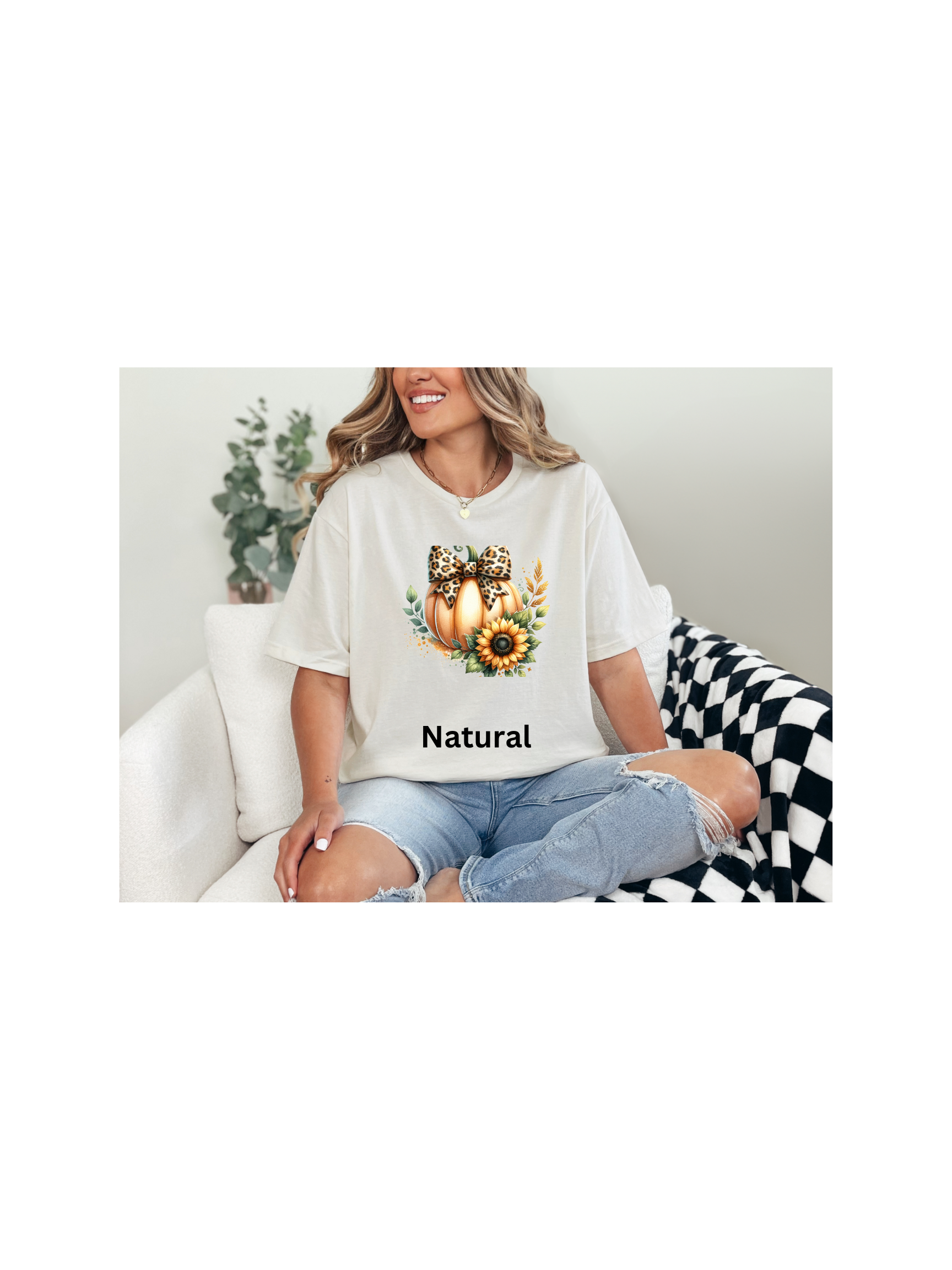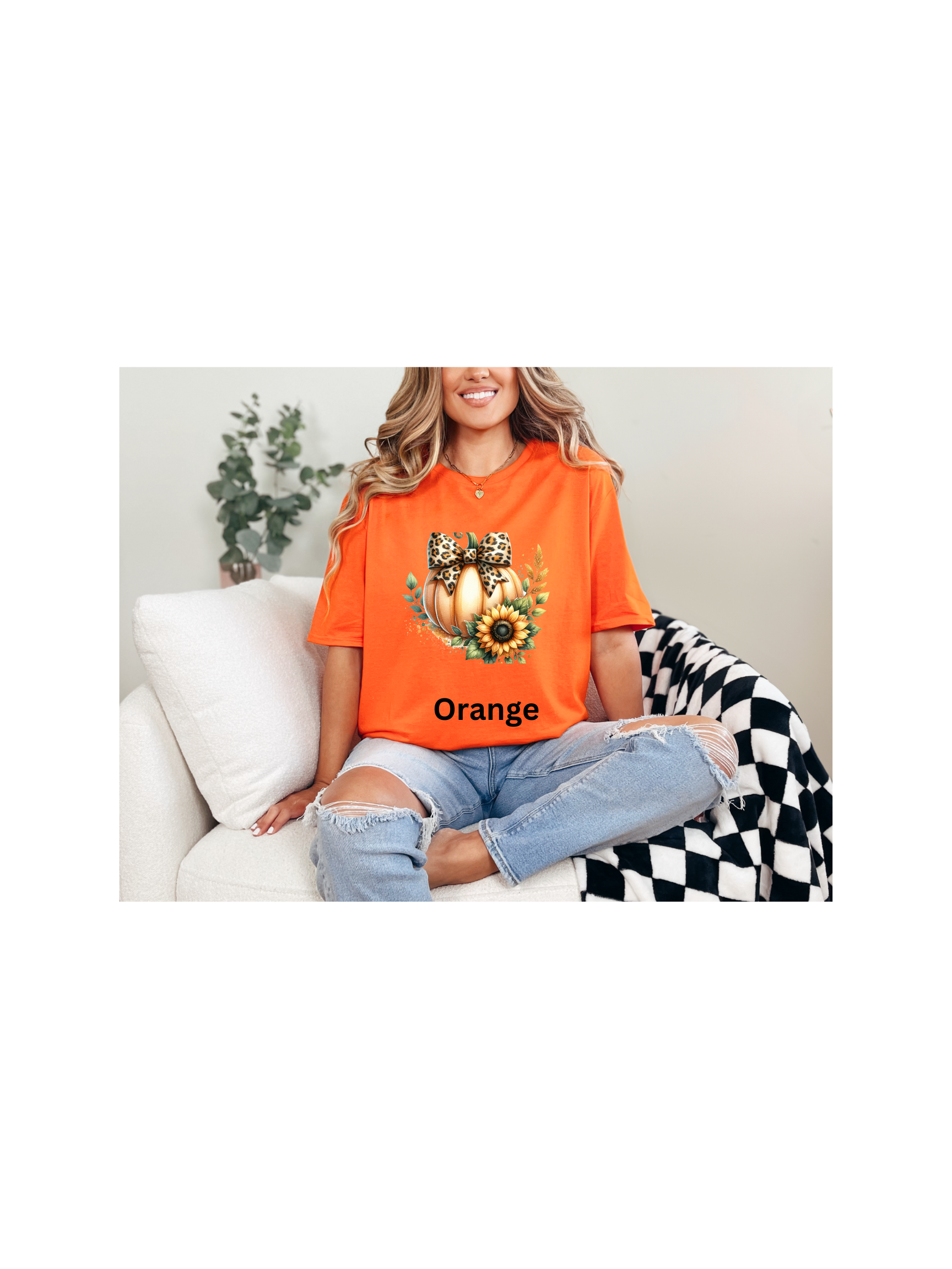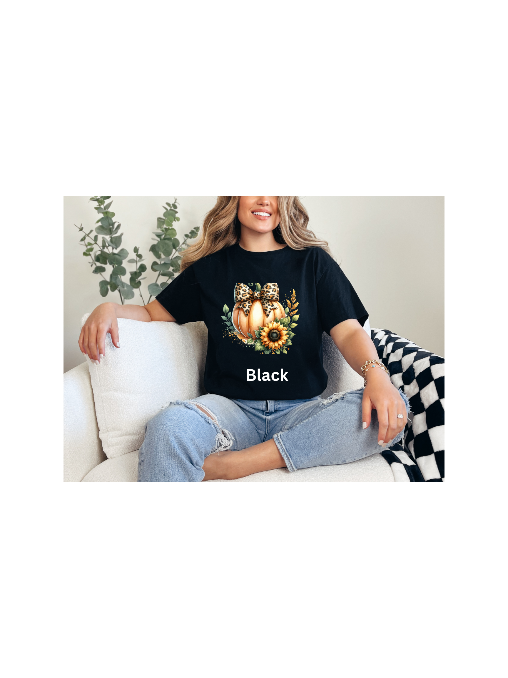 Get ready for the fall season with our playful Pumpkin Tee! Featuring a charming pumpkin and sunflower design, you'll be sure to stand out in style. Embrace the fun and celebrate the season with this quirky tee. (Available in multiple sizes. Order now!)