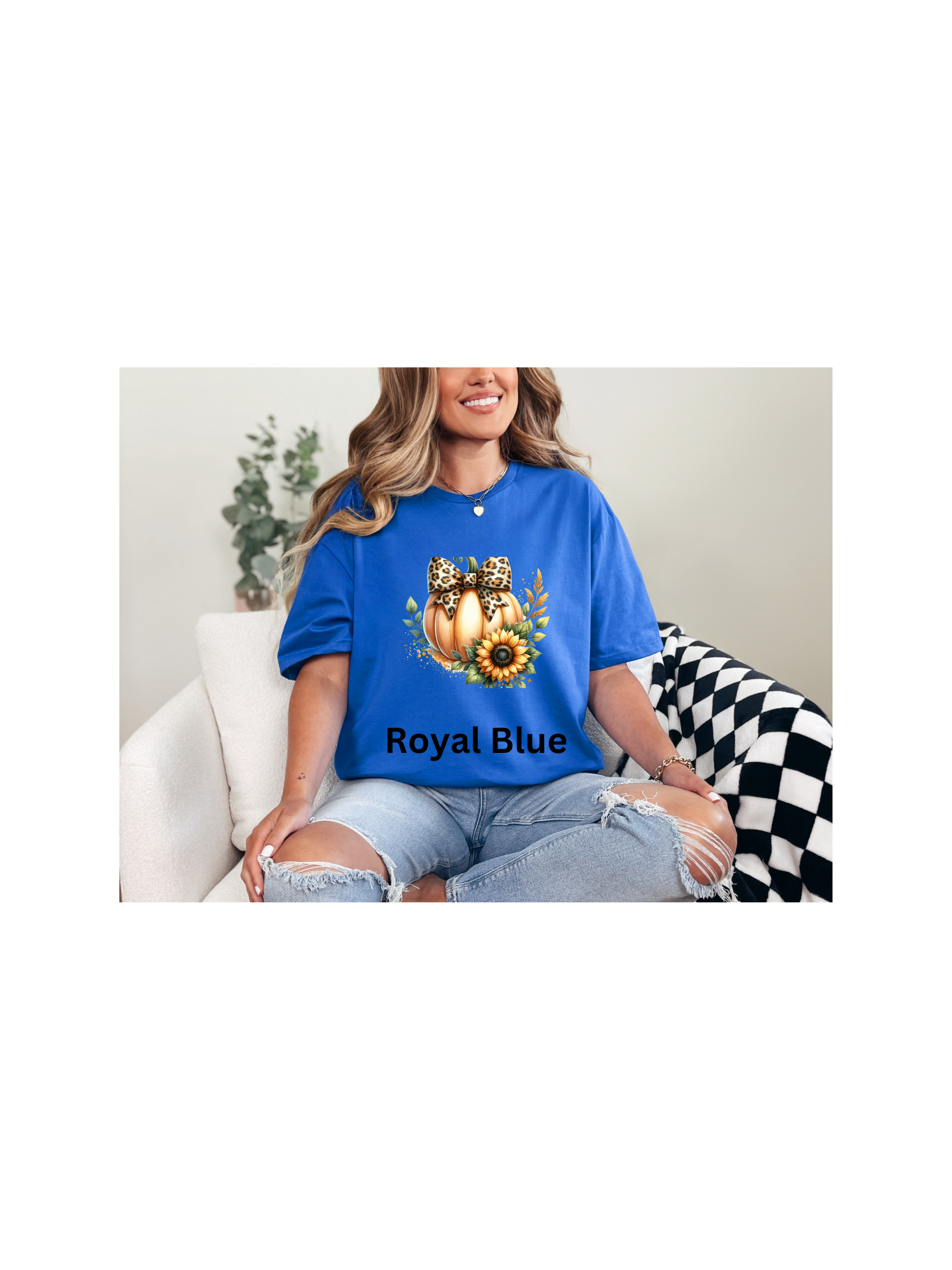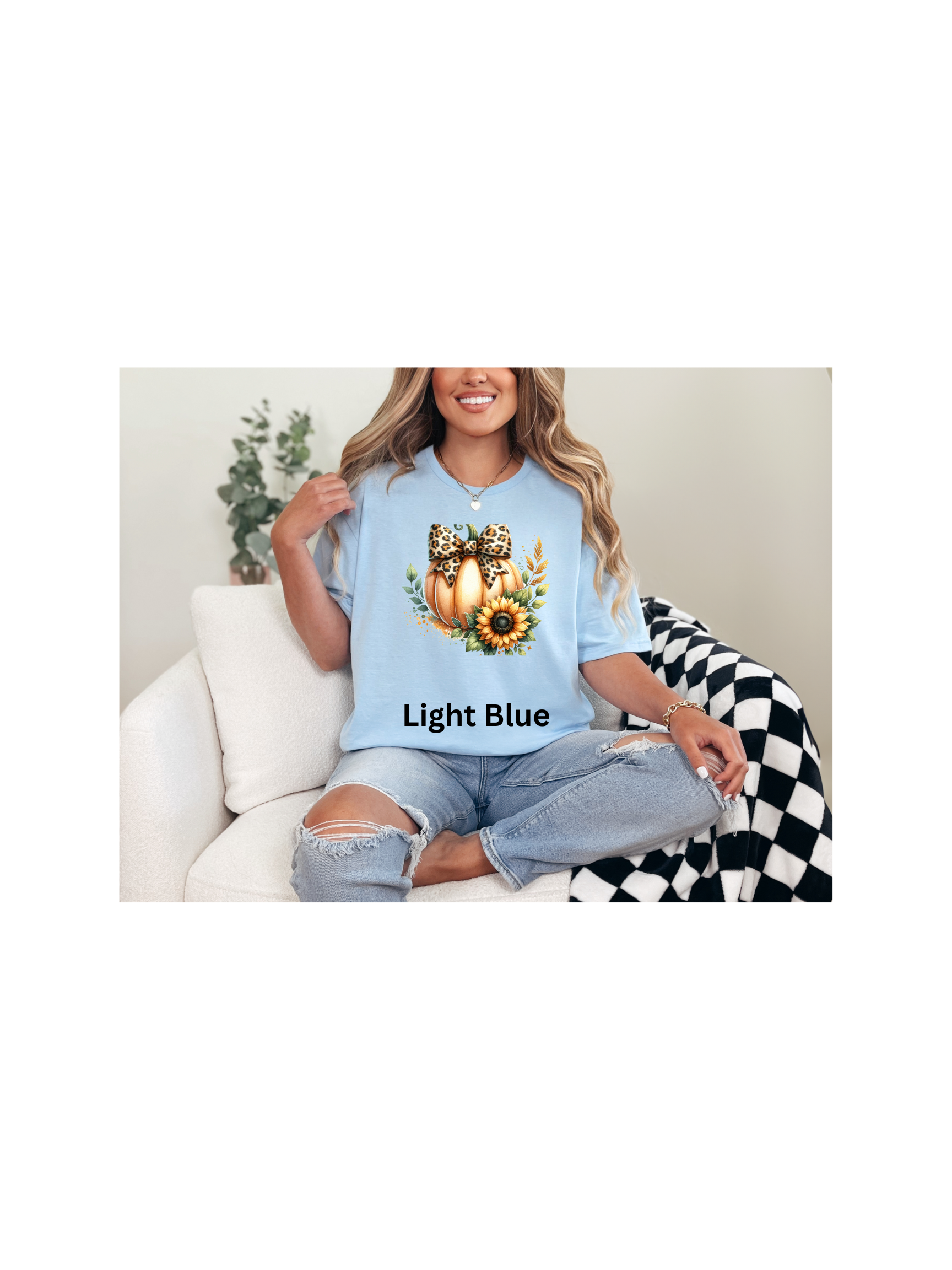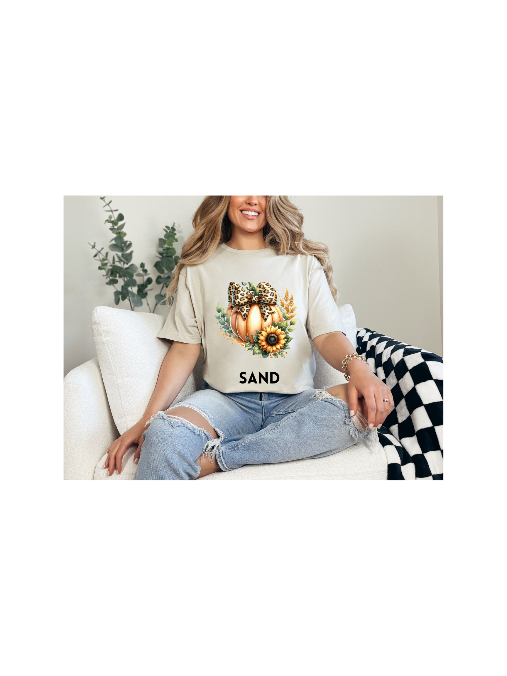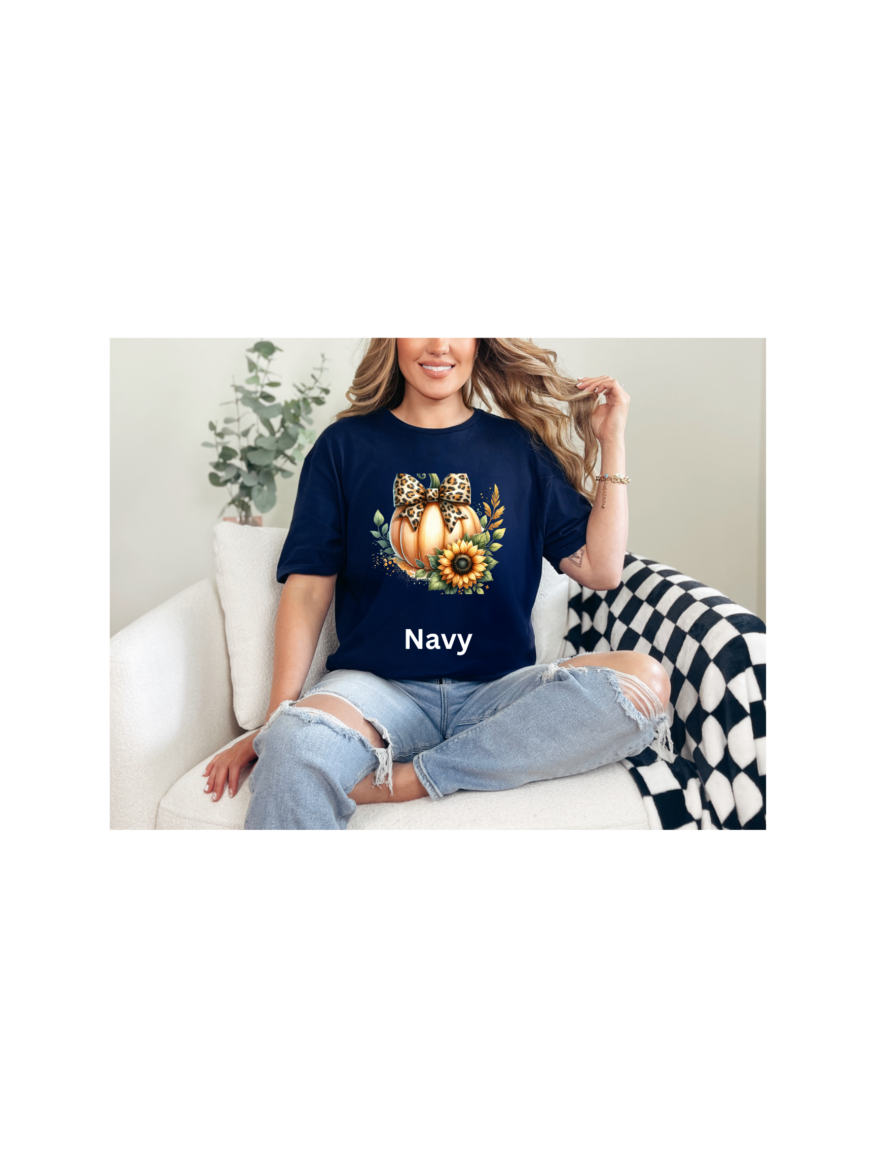 Get ready for the fall season with our playful Pumpkin Tee! Featuring a charming pumpkin and sunflower design, you'll be sure to stand out in style. Embrace the fun and celebrate the season with this quirky tee. (Available in multiple sizes. Order now!)