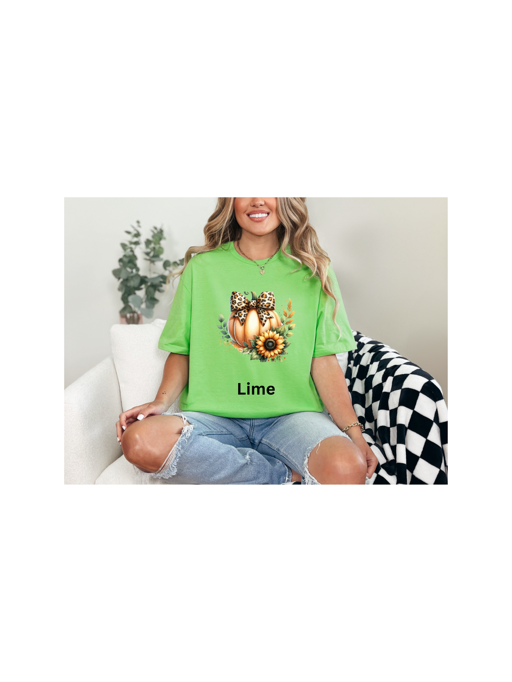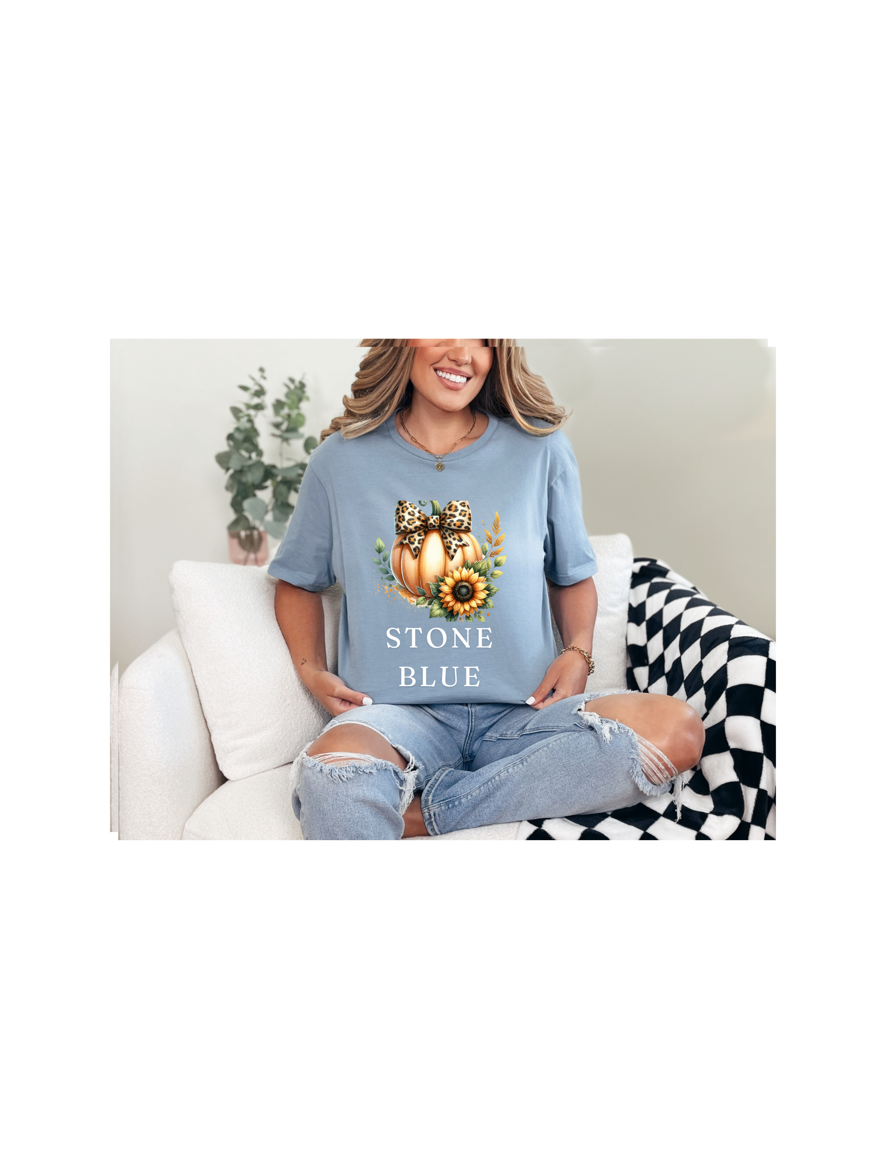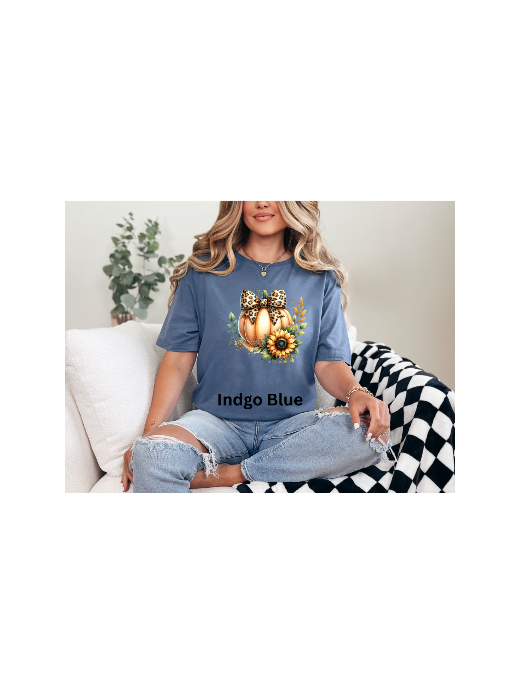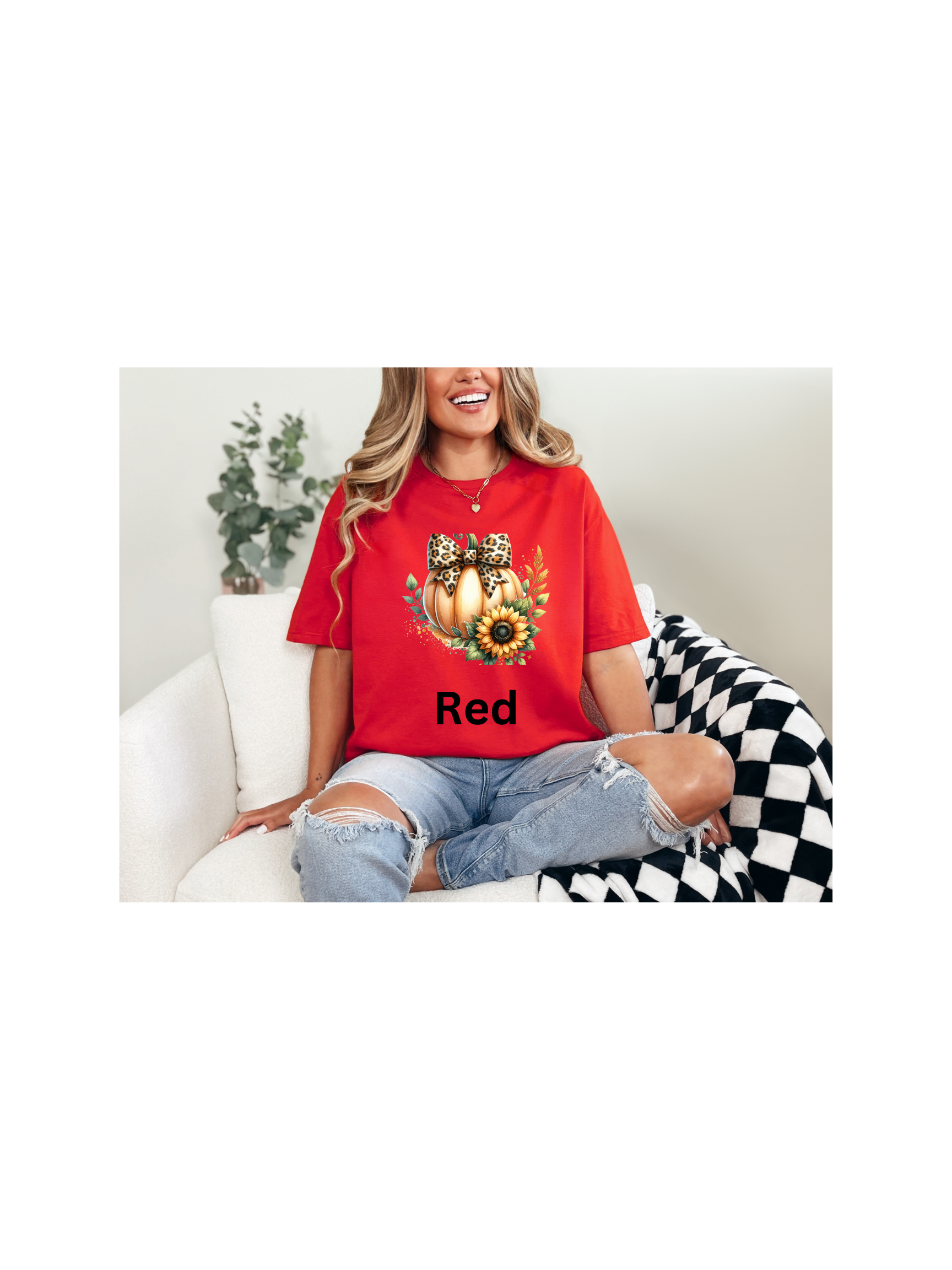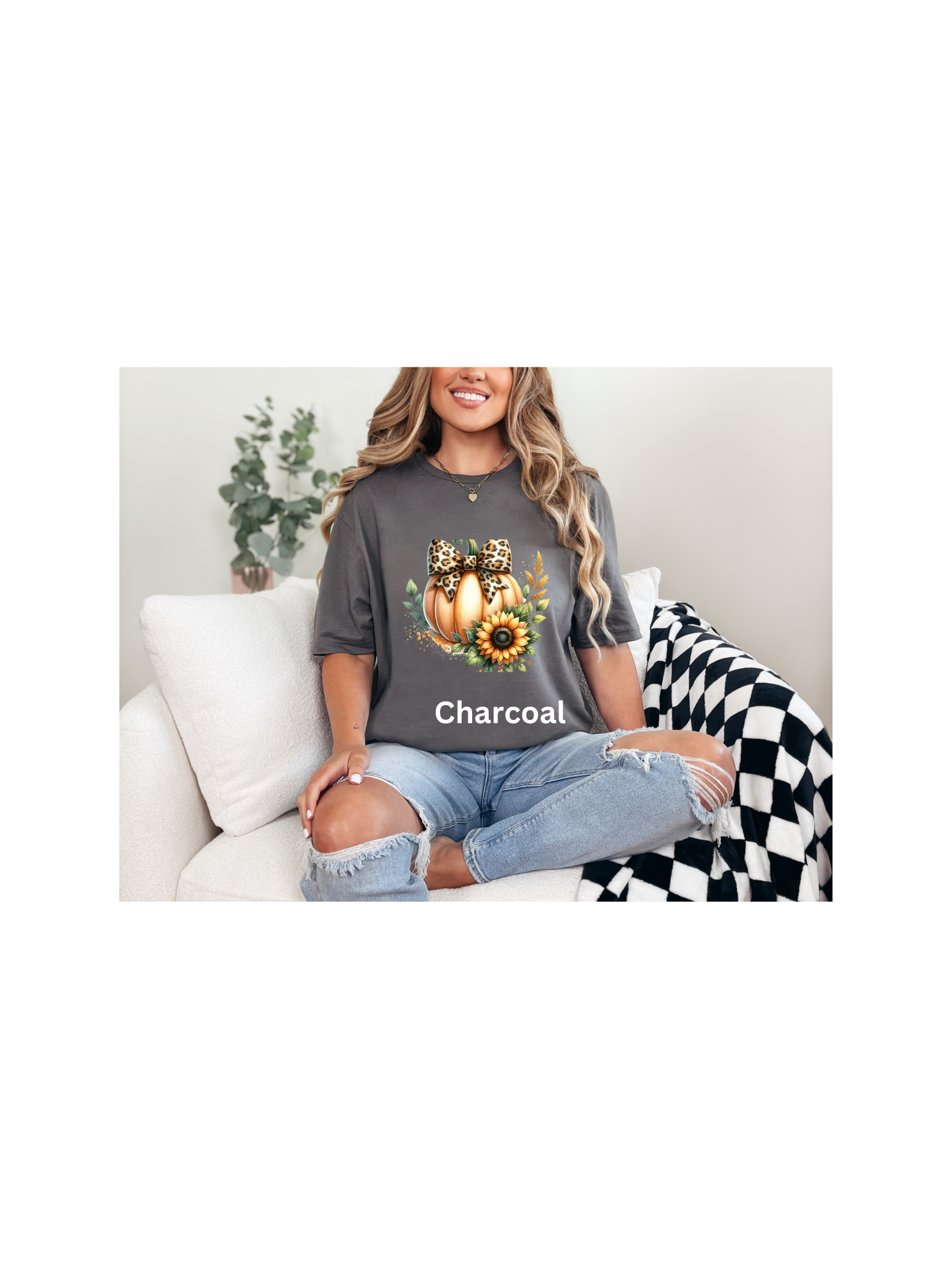 Get ready for the fall season with our playful Pumpkin Tee! Featuring a charming pumpkin and sunflower design, you'll be sure to stand out in style. Embrace the fun and celebrate the season with this quirky tee. (Available in multiple sizes. Order now!)