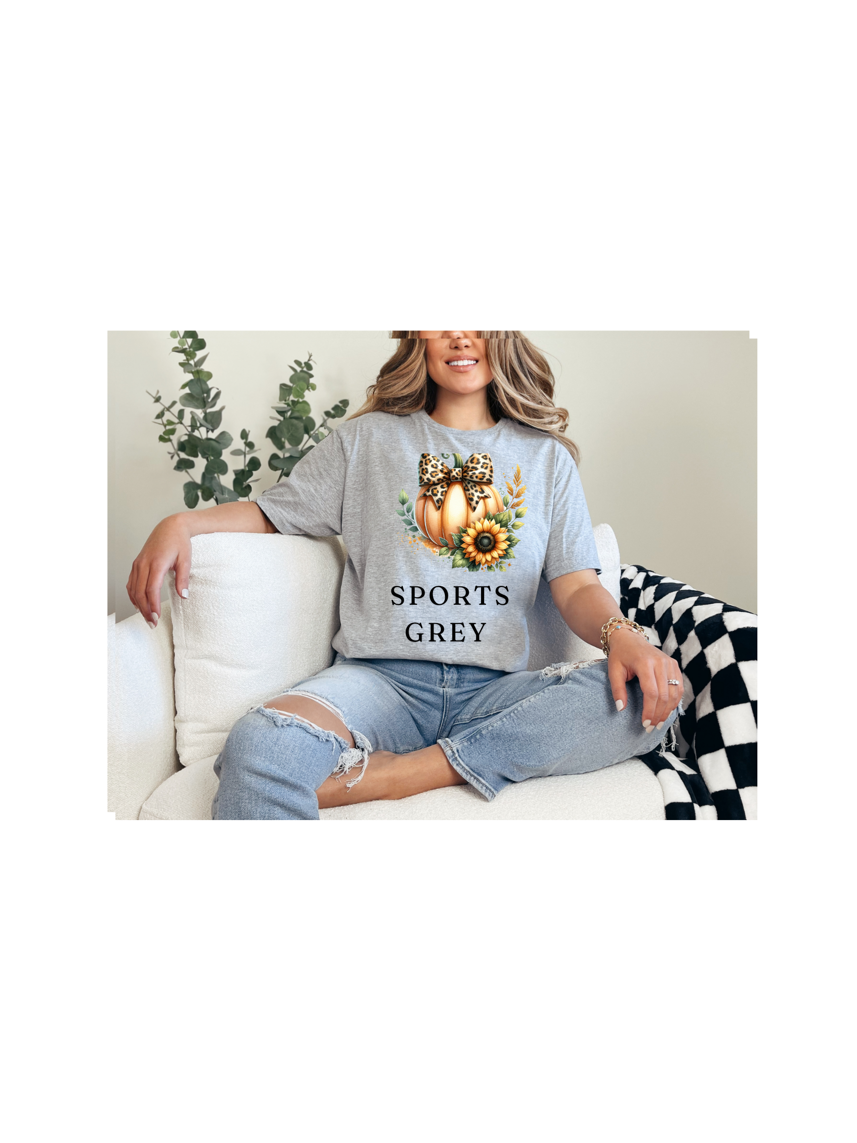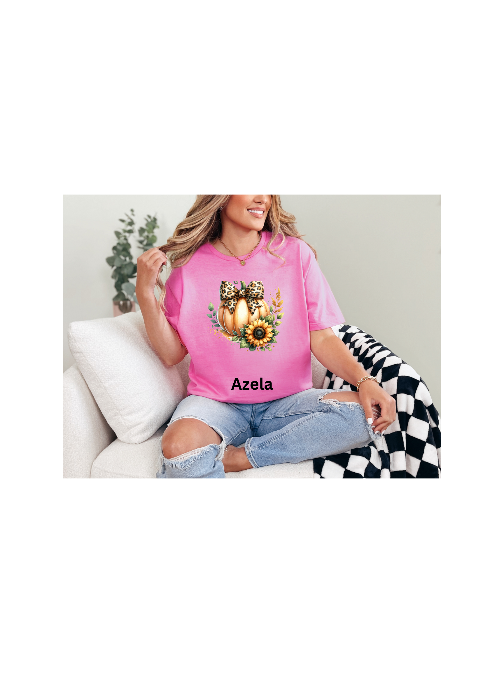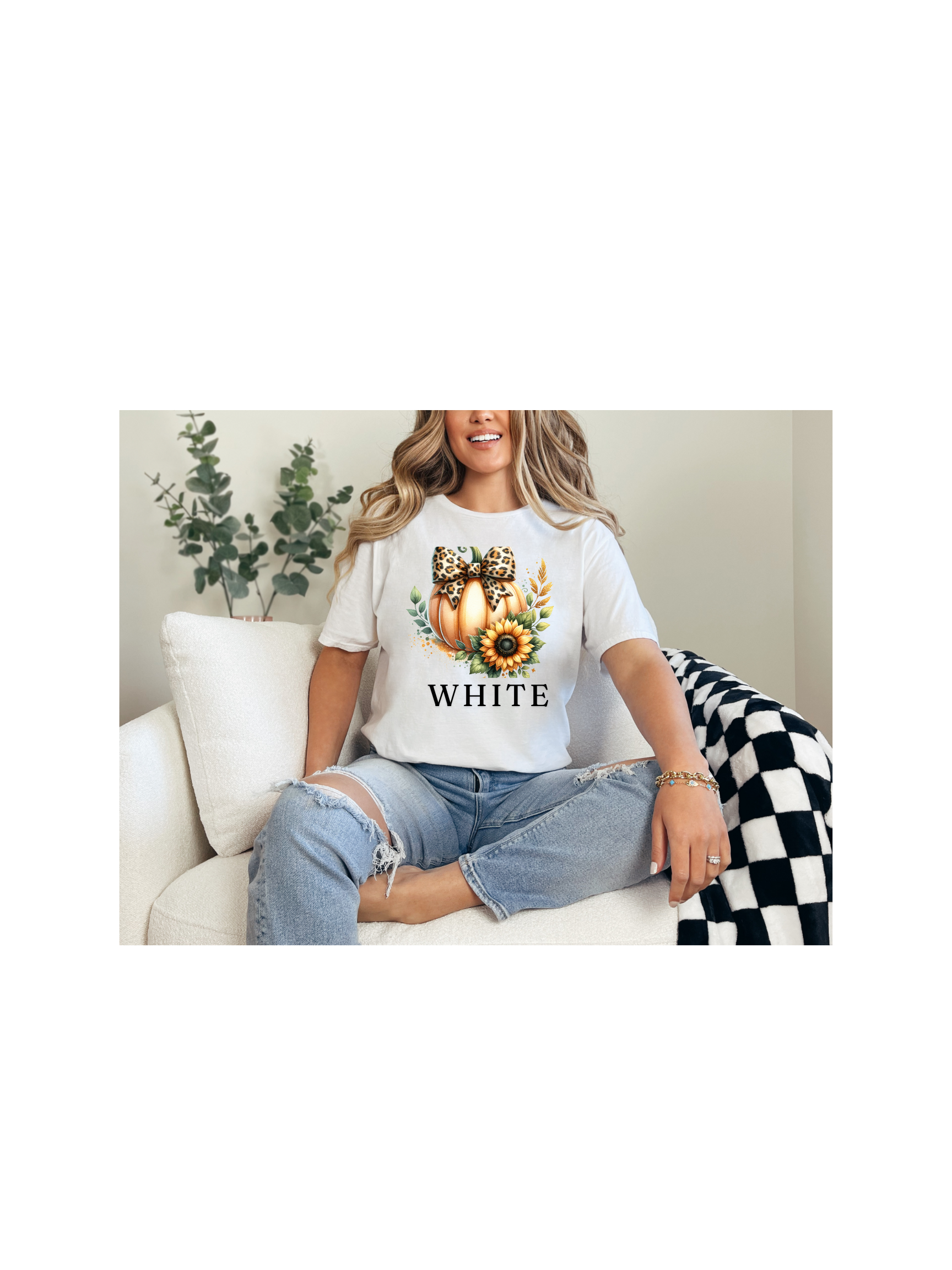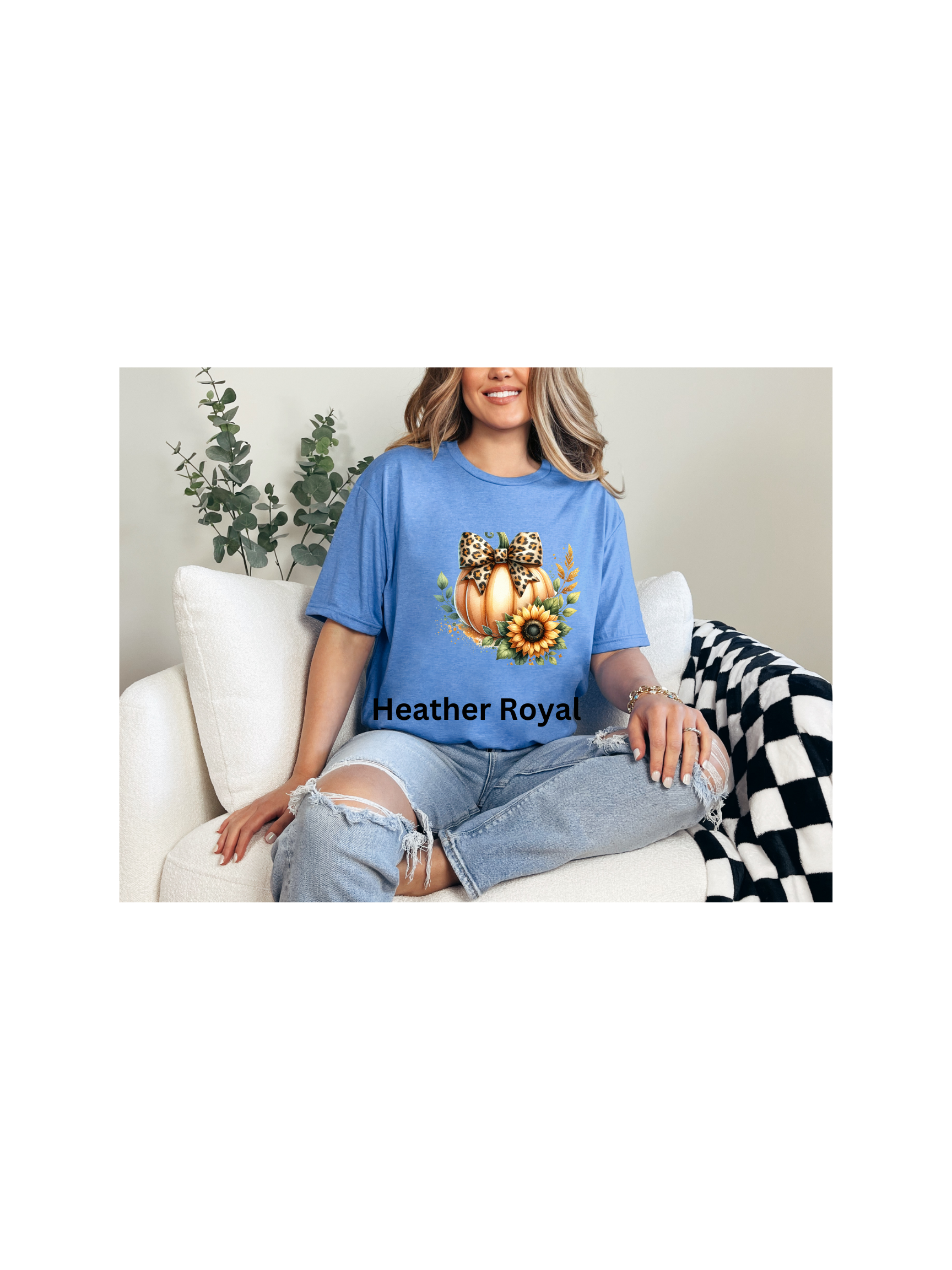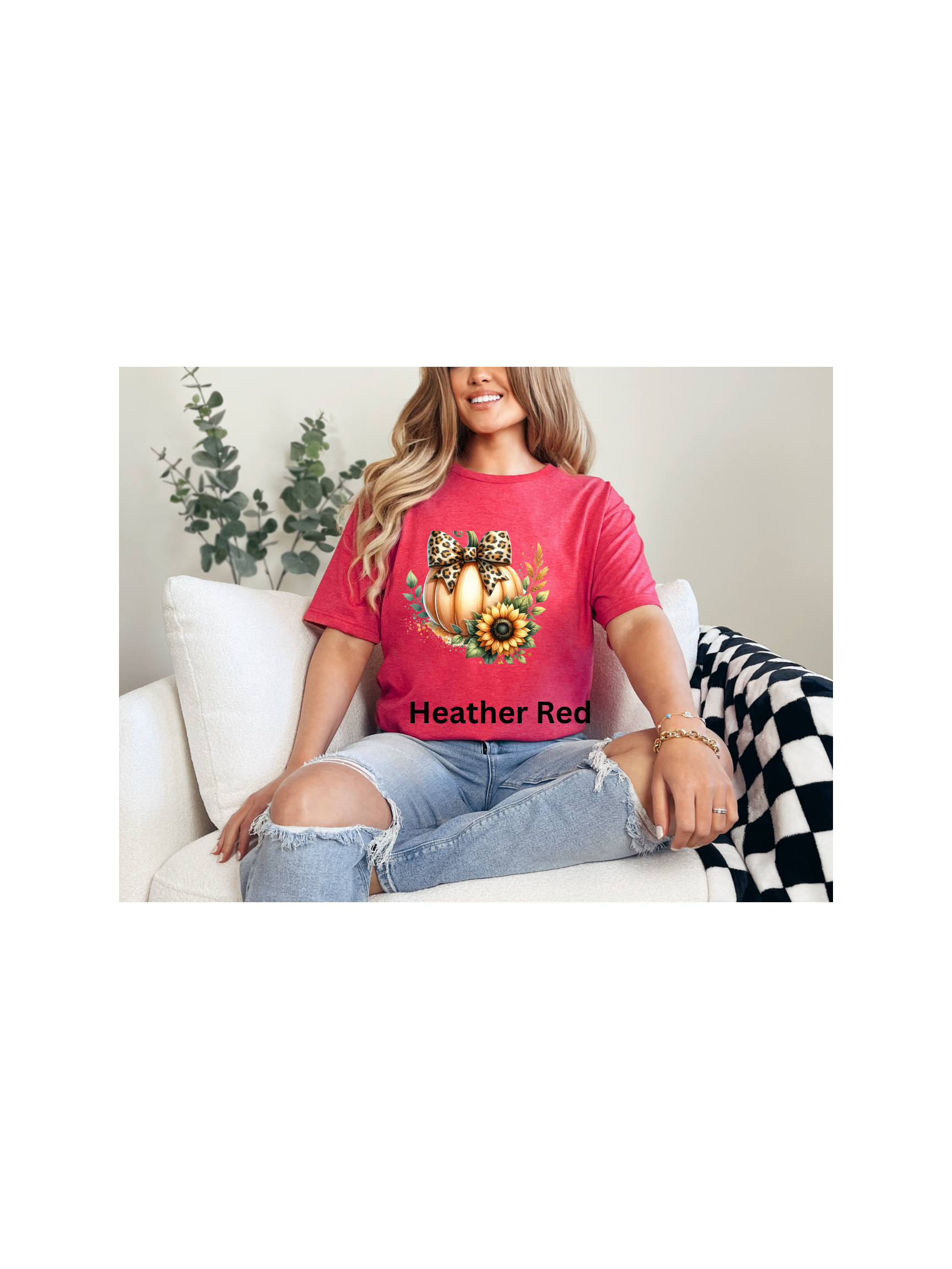 Get ready for the fall season with our playful Pumpkin Tee! Featuring a charming pumpkin and sunflower design, you'll be sure to stand out in style. Embrace the fun and celebrate the season with this quirky tee. (Available in multiple sizes. Order now!)